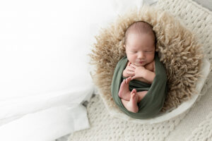 On the day of the session, whether in your home or in my Medina studio, I focus on creating a calm and relaxed atmosphere. I offer a beautiful selection of newborn outfits, wraps, props, and headbands. Whether you love soft neutrals or a pop of color, I have options to suit your style. I take my time with every baby, rocking, swaddling, and soothing them so they feel safe and comfortable. Siblings are included at their own pace, making the session a family experience, not just a newborn shoot. At my Medina studio I have a sitting area stocked with water, snacks, children’s books, and toys to help your family be as comfortable as possible during the session. You’re also welcome to browse the studio and see samples of the heirloom-quality products available to display your portraits at home.